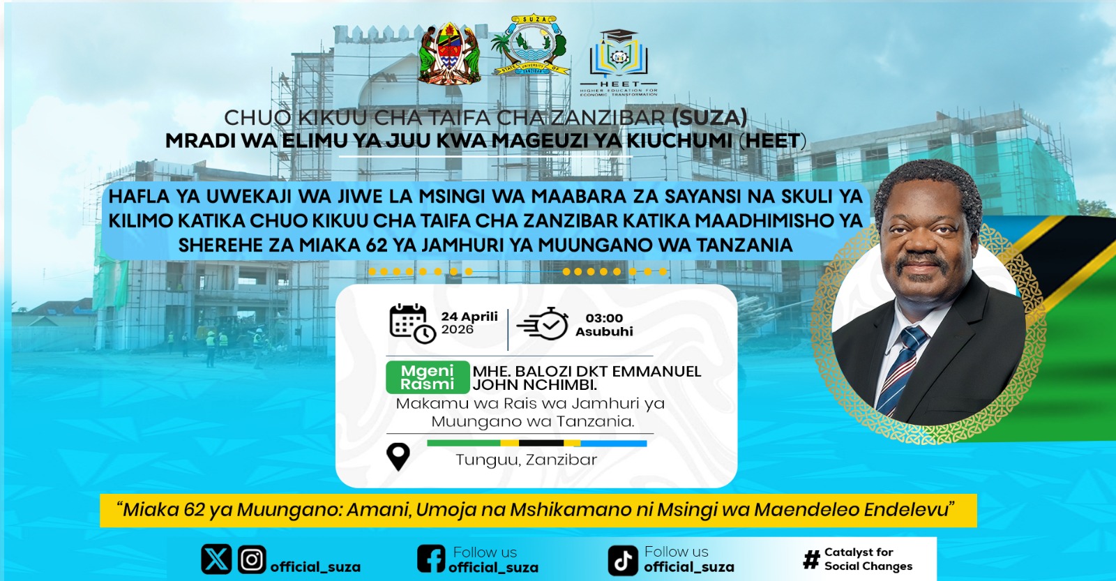 It is my profound honour to welcome you to the State University of Zanzibar (SUZA), a distinguished institution committed to shaping minds, advancing knowledge, and serving society with excellence.